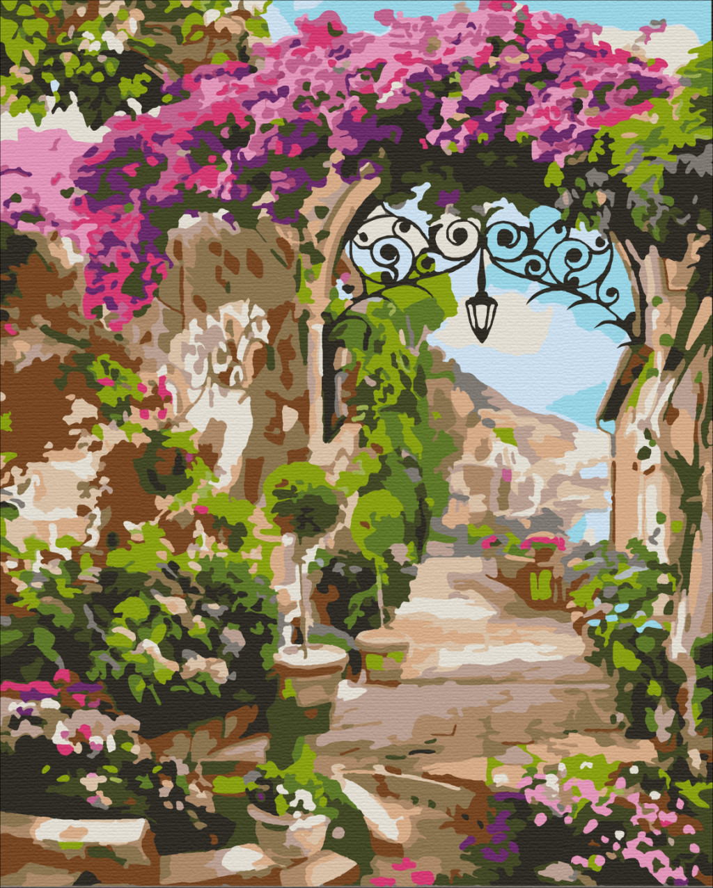 Blumiges Tor – Malen nach Zahlen Set auf Rahmen 40x50 cm
