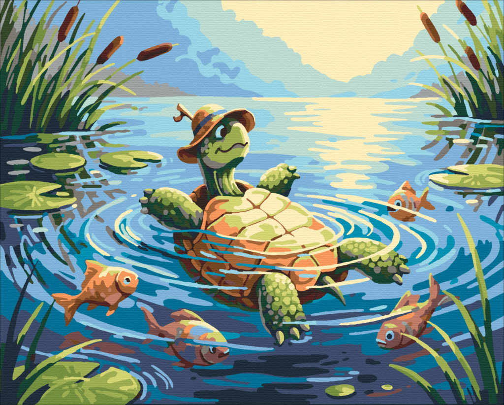 Chillige Schildkröte – Malen nach Zahlen Set auf Rahmen 40x50 cm