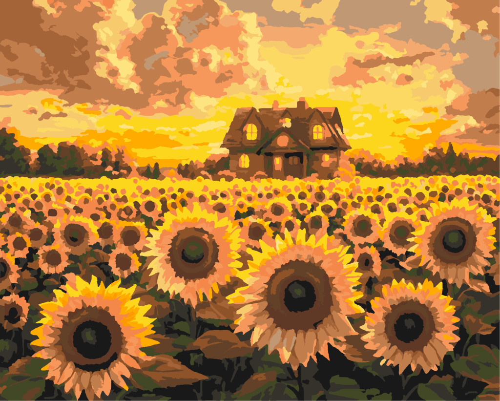 Das Zuhause der Sonnenblumen – Malen nach Zahlen Set auf Rahmen 40x50 cm
