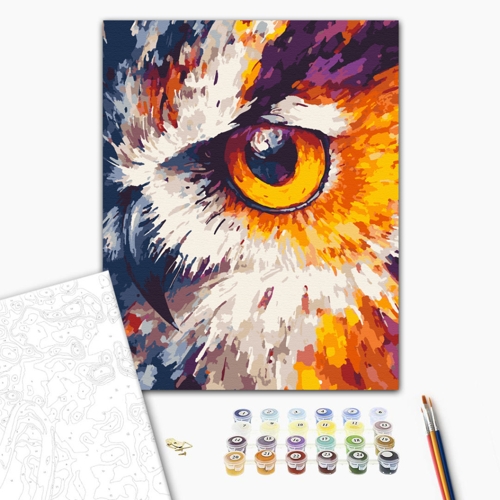 Der Blick der Eule - Malen nach Zahlen Set auf Rahmen 40x50 cm