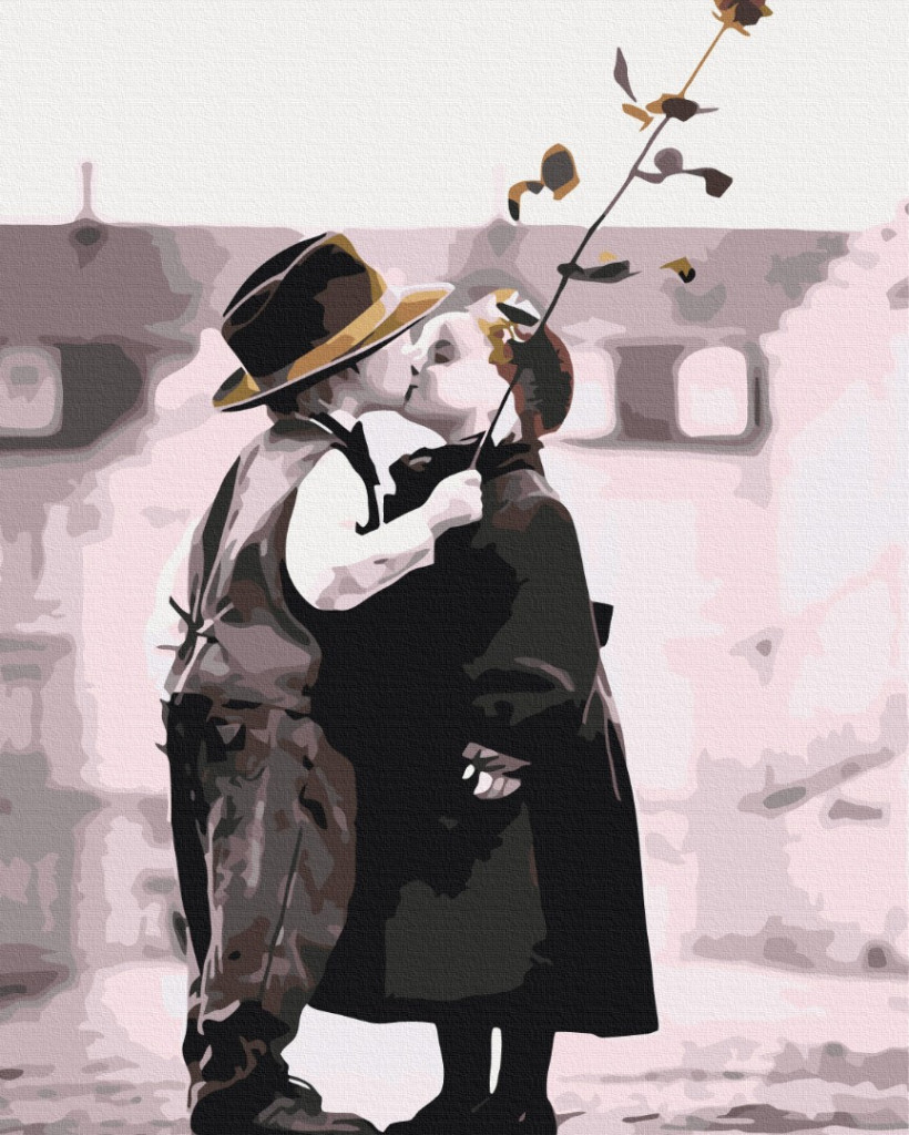 Erster Kuss – Malen nach Zahlen Set auf Rahmen 40x50 cm