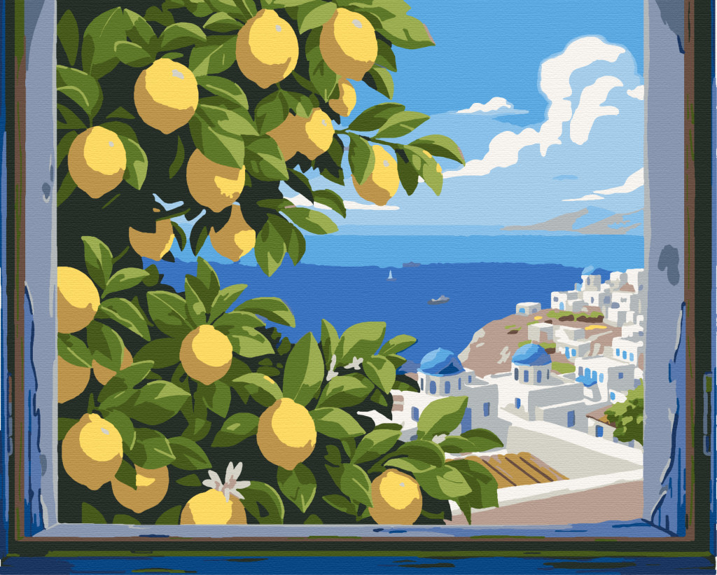 Fensterblick aufs Meer – Malen nach Zahlen Set auf Rahmen 40x50 cm