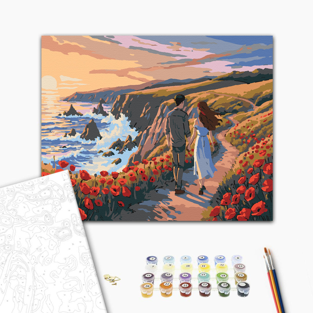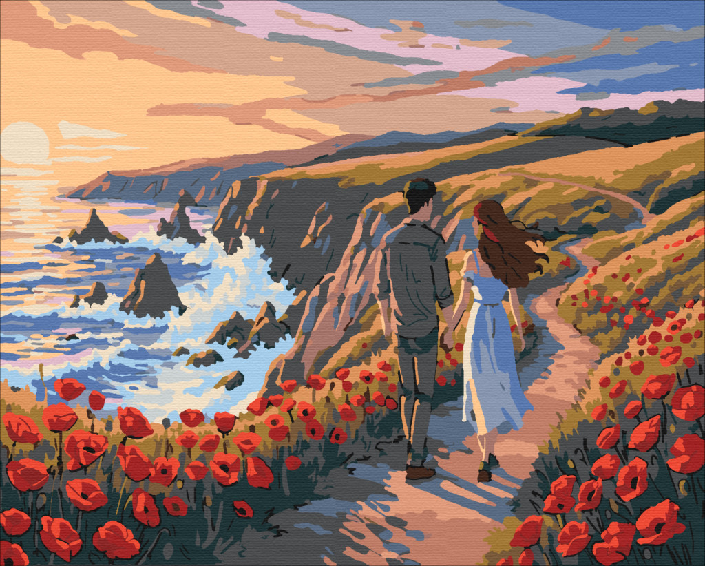 Hand in Hand im Mohnfeld – Malen nach Zahlen Set auf Rahmen 40x50 cm