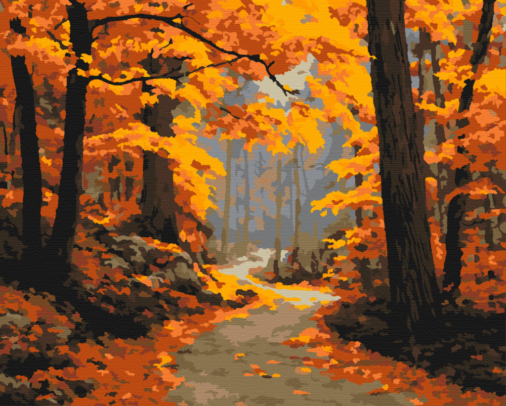 Herbstlicher Traumweg – Malen nach Zahlen Set auf Rahmen 40x50 cm
