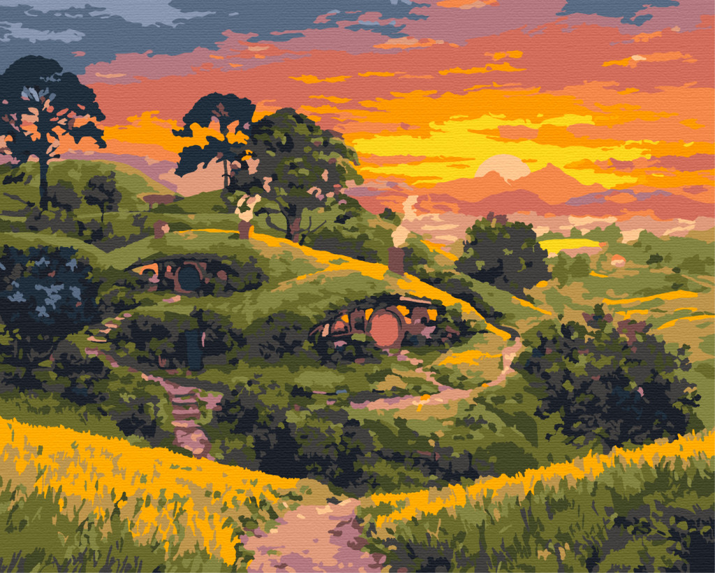 Märchenhafte Hügelhäuser – Malen nach Zahlen Set auf Rahmen 40x50 cm