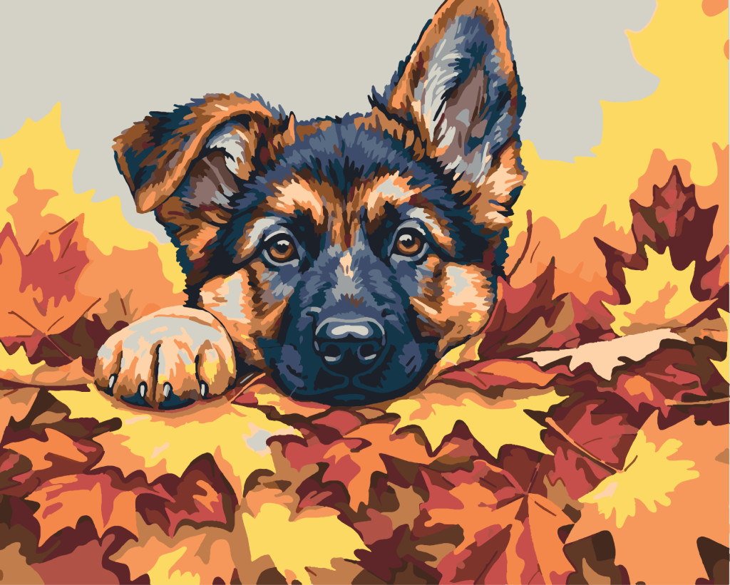 Versteckspiel zwischen den Blättern – Malen nach Zahlen Set auf Rahmen 40x50 cm