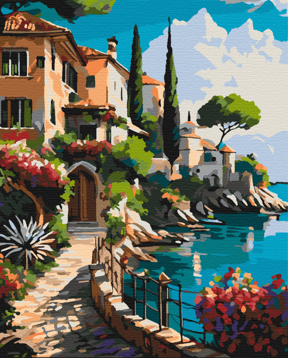 Mediterraner Strand - Malen-nach-Zahlen-Set auf Keilrahmen 40x50