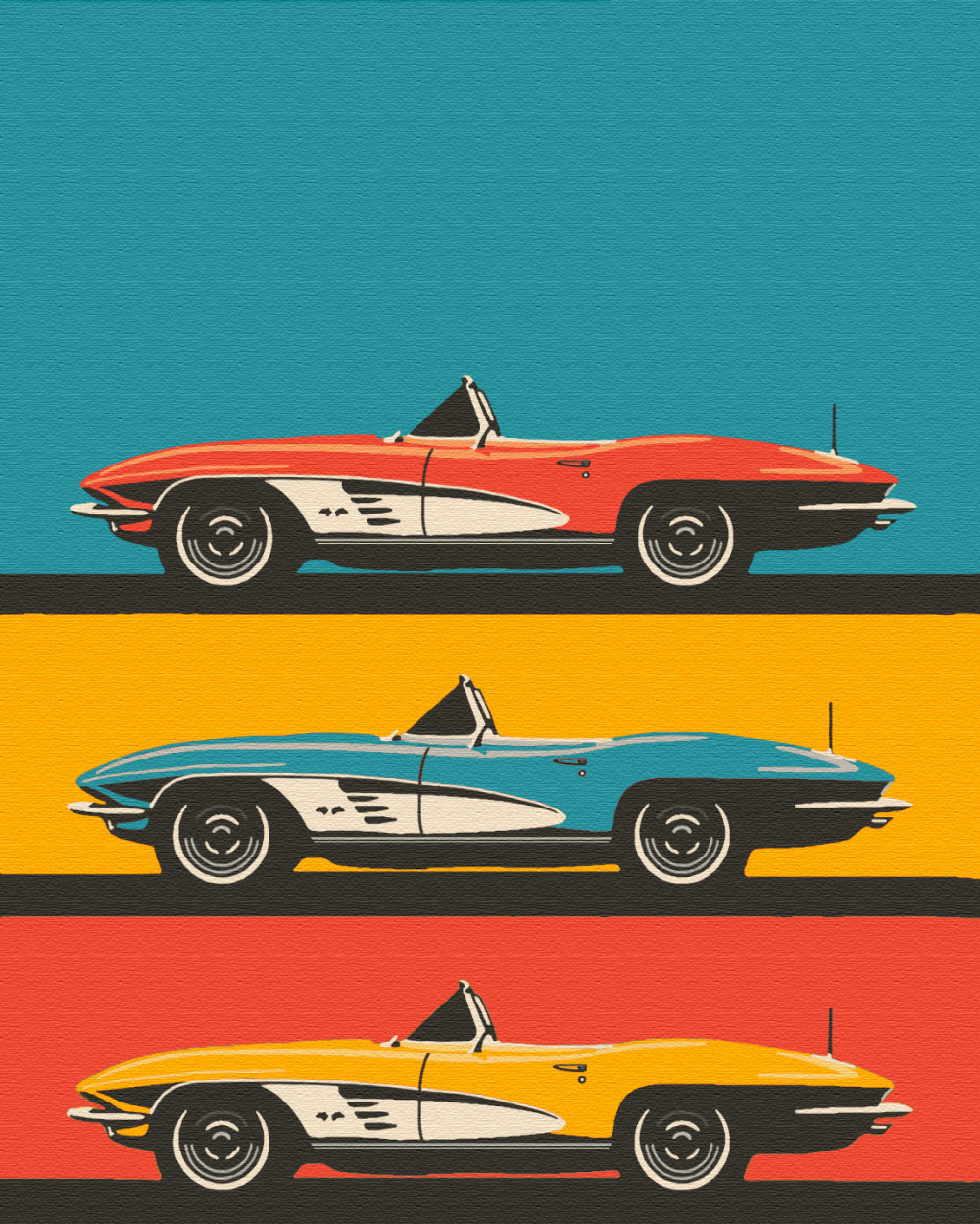 Drei Corvettes - Malen-nach-Zahlen-Set auf Keilrahmen 40x50