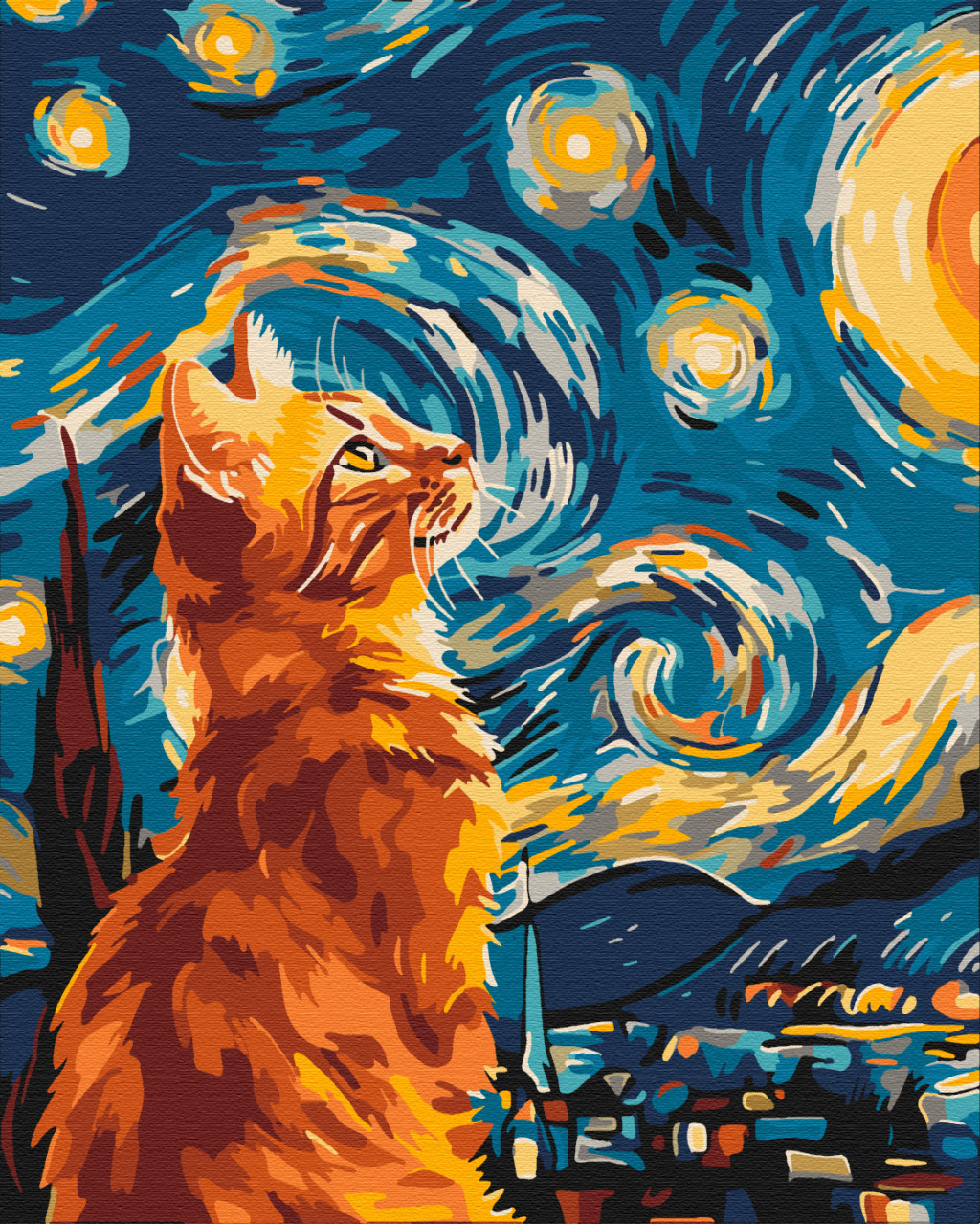 Katze unter dem Sternenhimmel - Malen-nach-Zahlen-Set auf Keilrahmen 40x50