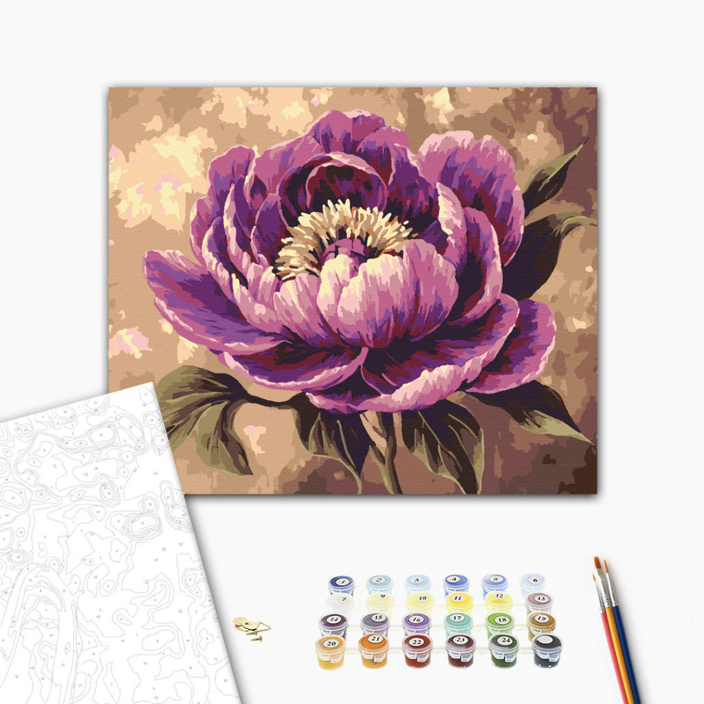 Lila Pfingstrose - Malen-nach-Zahlen-Set auf Keilrahmen 40x50