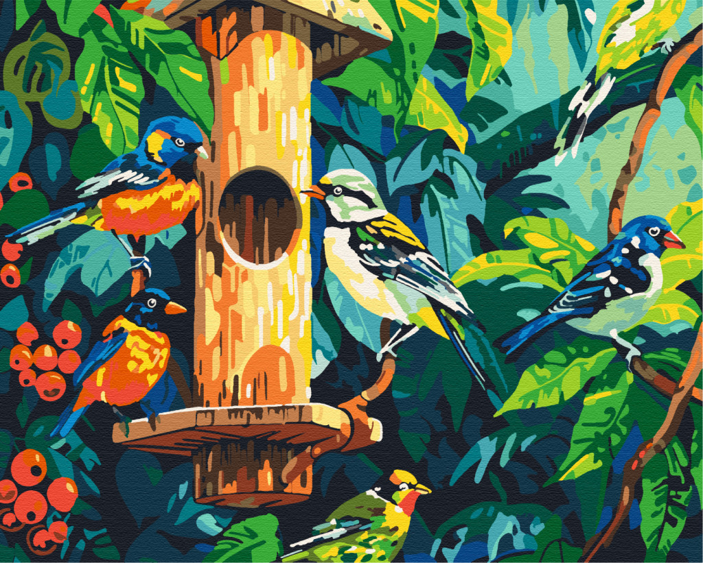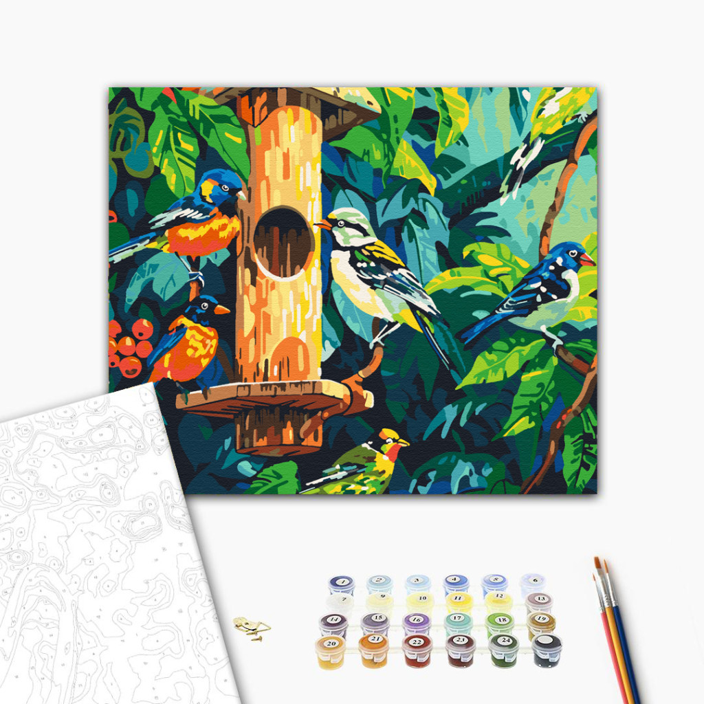 Vögel am Futterplatz - Malen-nach-Zahlen-Set auf Keilrahmen 40x50