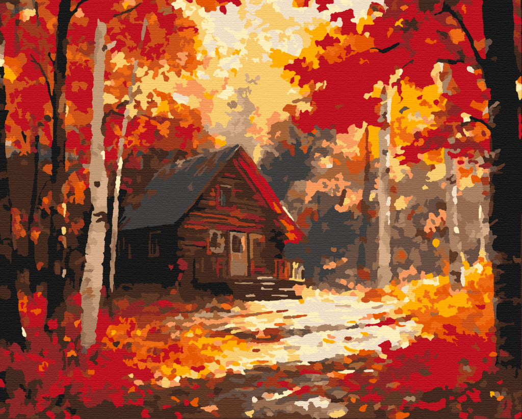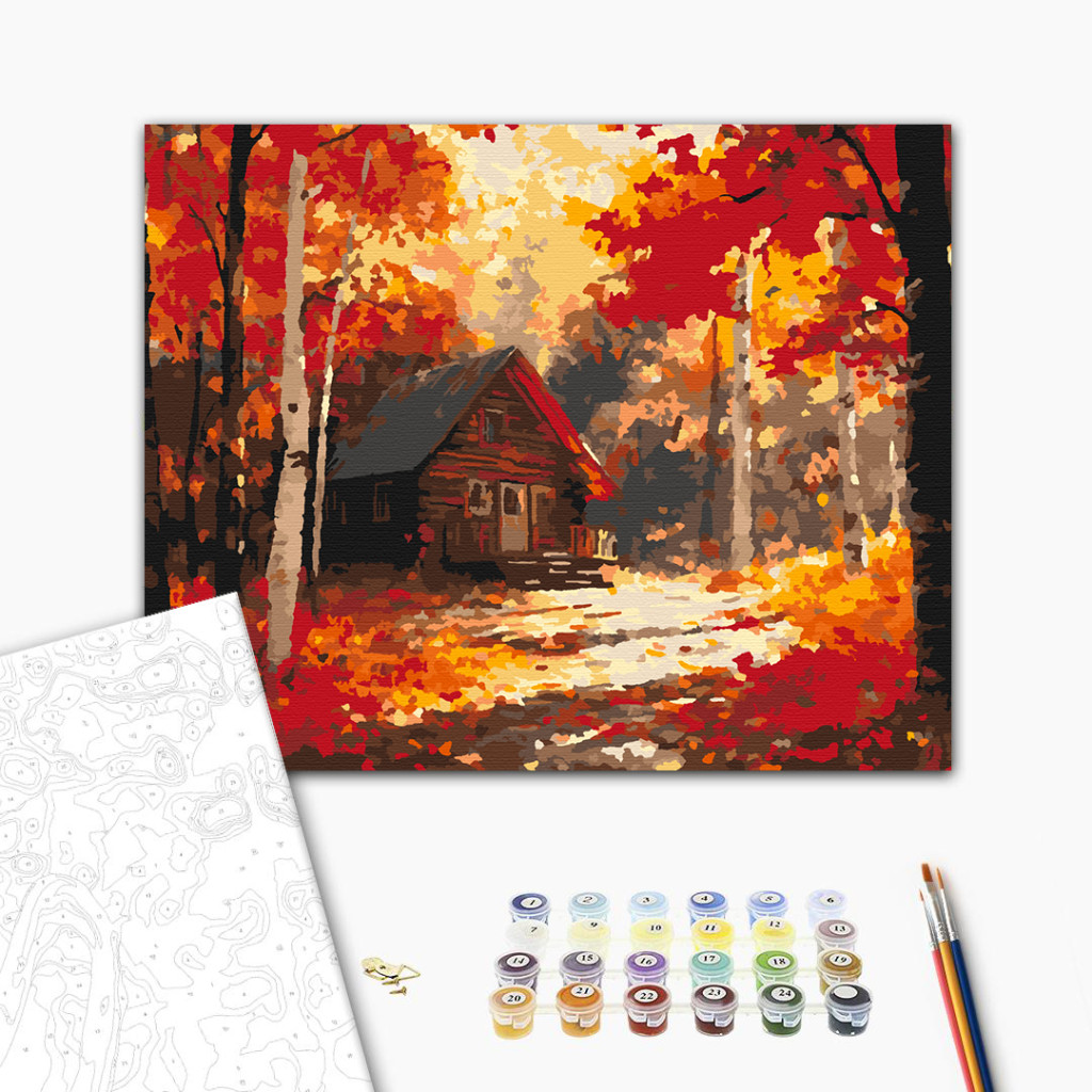 Őszi erdei ház - Számfestő készlet kereten 40x50