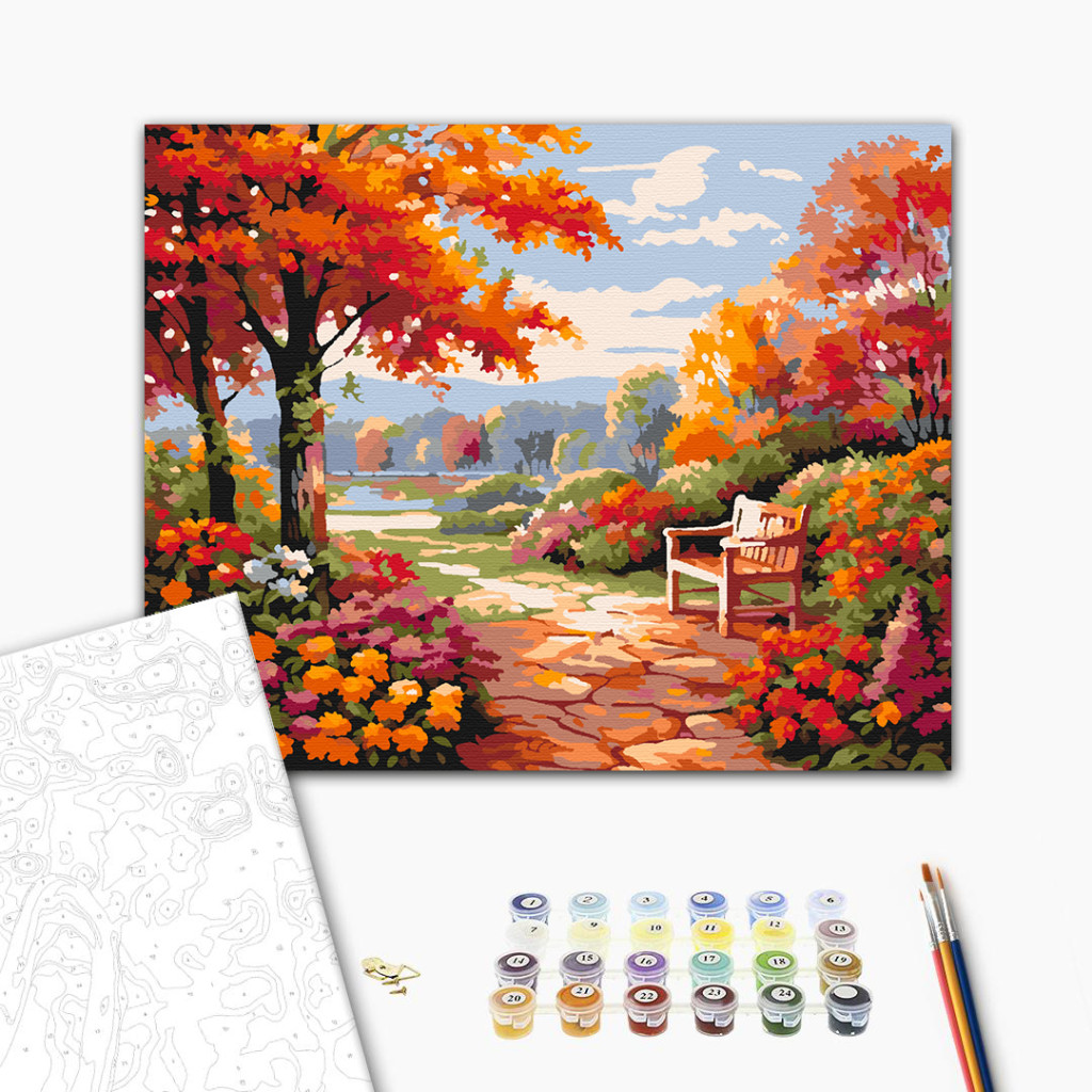 Keretre feszített, számozott kifestőkészlet előrajzolt vászonnal, akrilfestékekkel, ecsettel és segédlettel.
