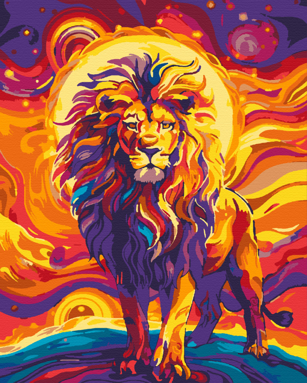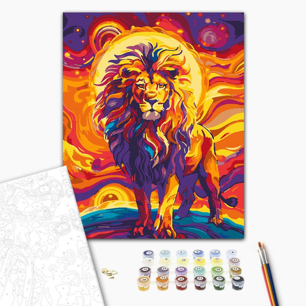 Lángoló nap oroszlán - Számfestő készlet kereten 40x50