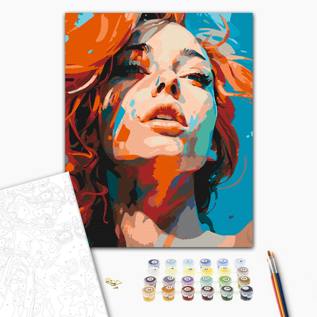 Keretre feszített, számozott kifestőkészlet előrajzolt vászonnal, akrilfestékekkel, ecsettel és segédlettel.