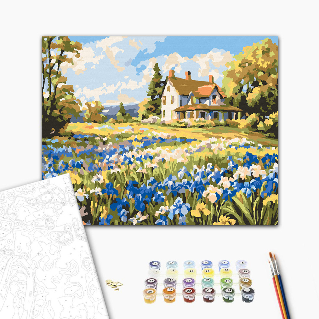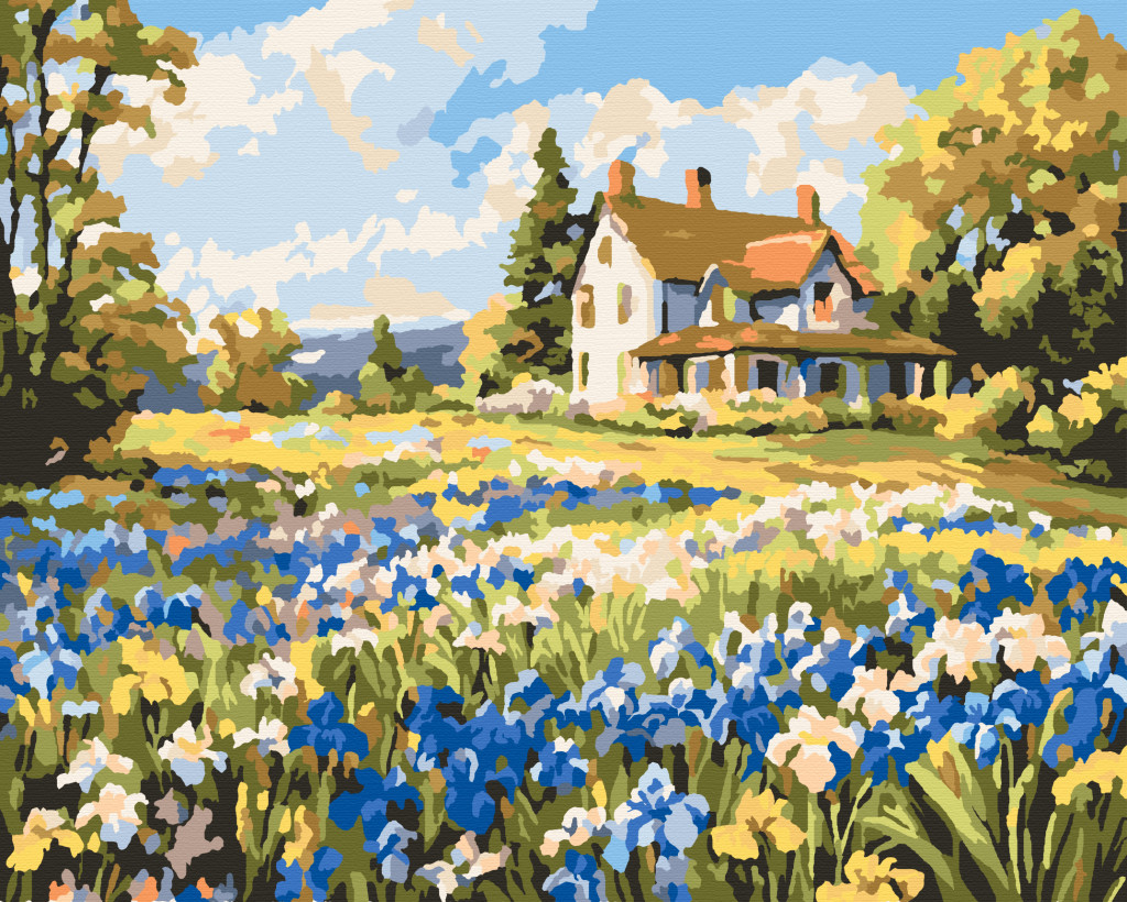 Kék virágkert - Számfestő készlet kereten 40x50