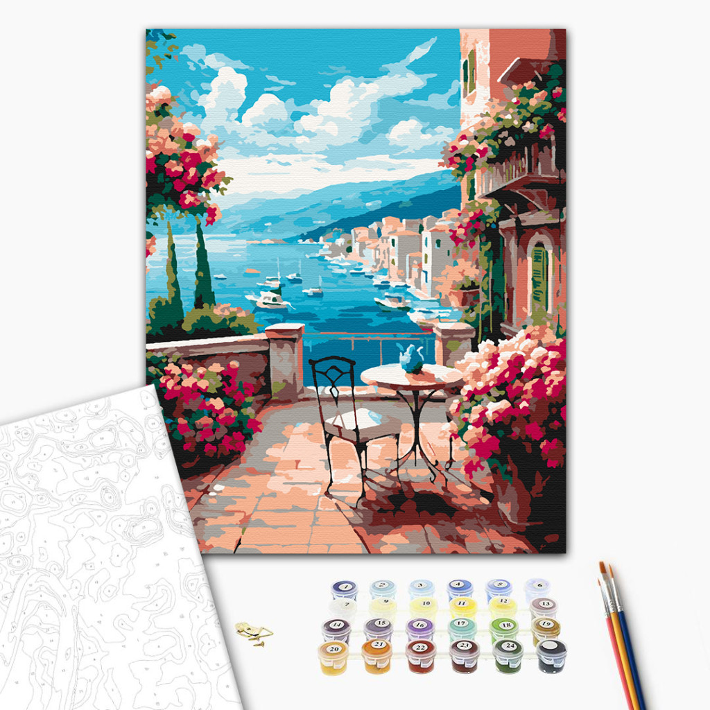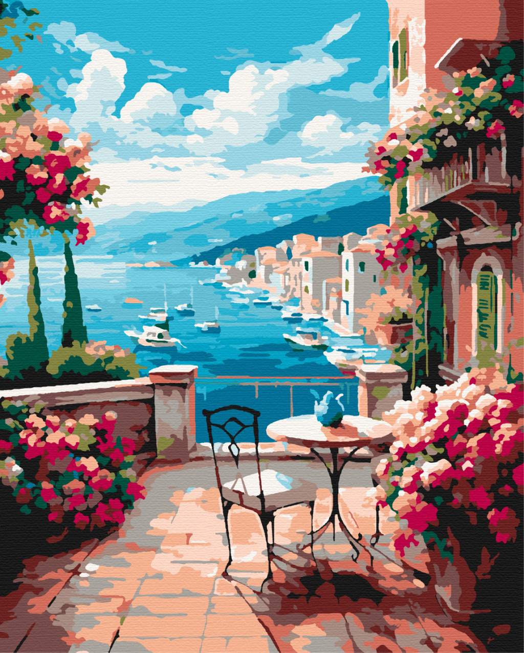 Kék égbolt kikötője - Számfestő készlet kereten 40x50