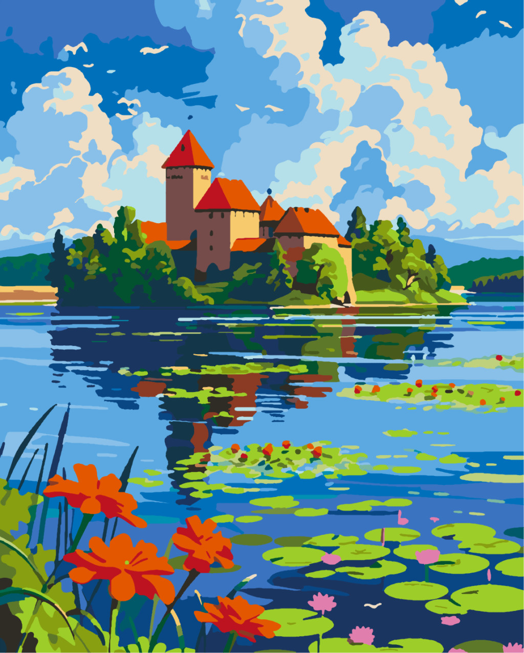 Schloss am See - Malen-nach-Zahlen-Set auf Keilrahmen 40x50