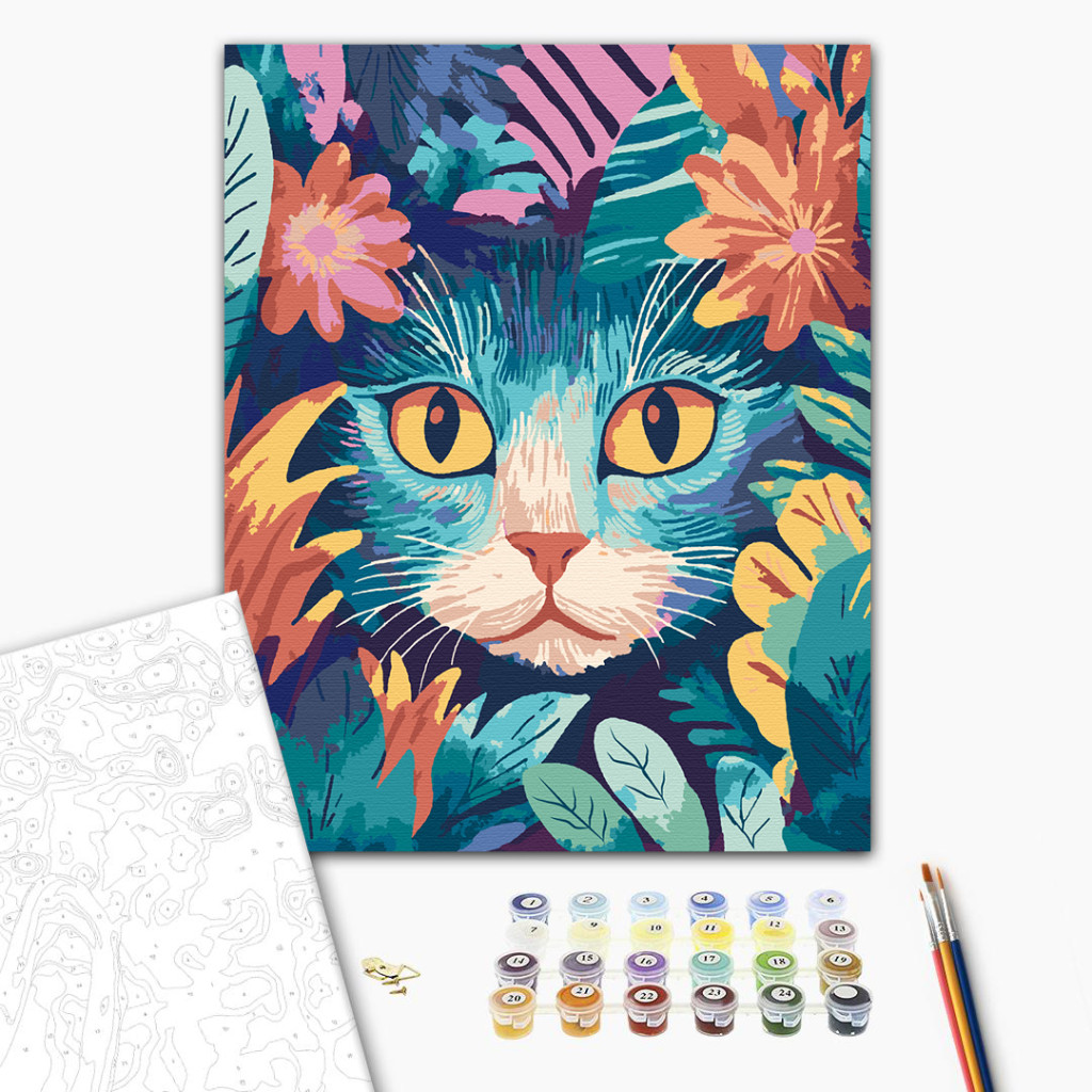 Keretre feszített, számozott kifestőkészlet előrajzolt vászonnal, akrilfestékekkel, ecsettel és segédlettel.