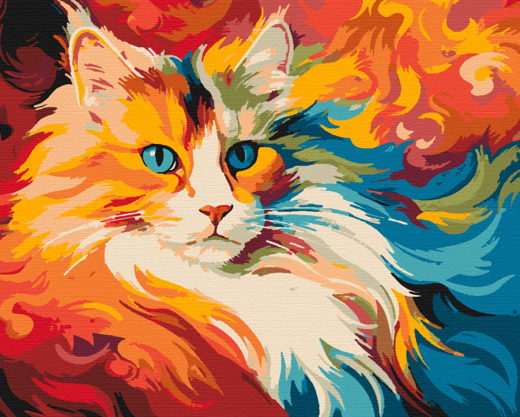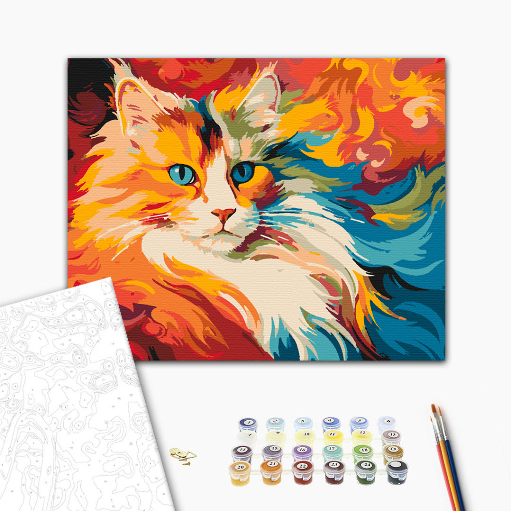 Macska szivárvány - Számfestő készlet kereten 40x50