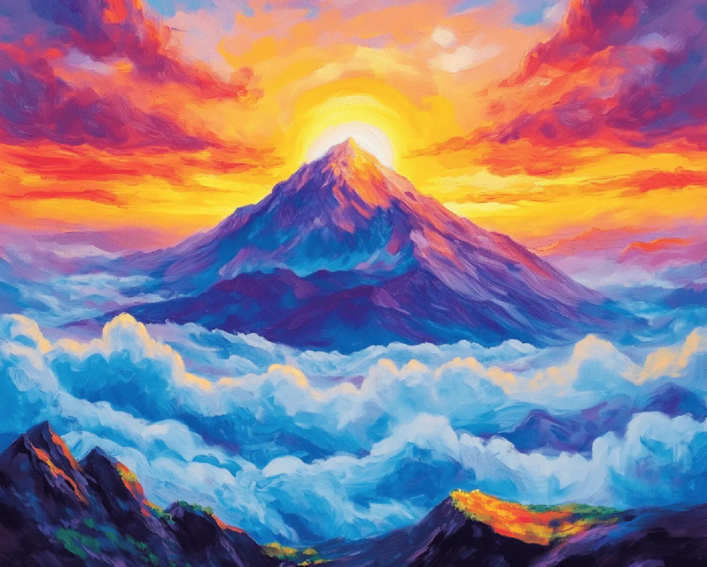 Felhős hegycsúcs - Számfestő készlet kereten 40x50