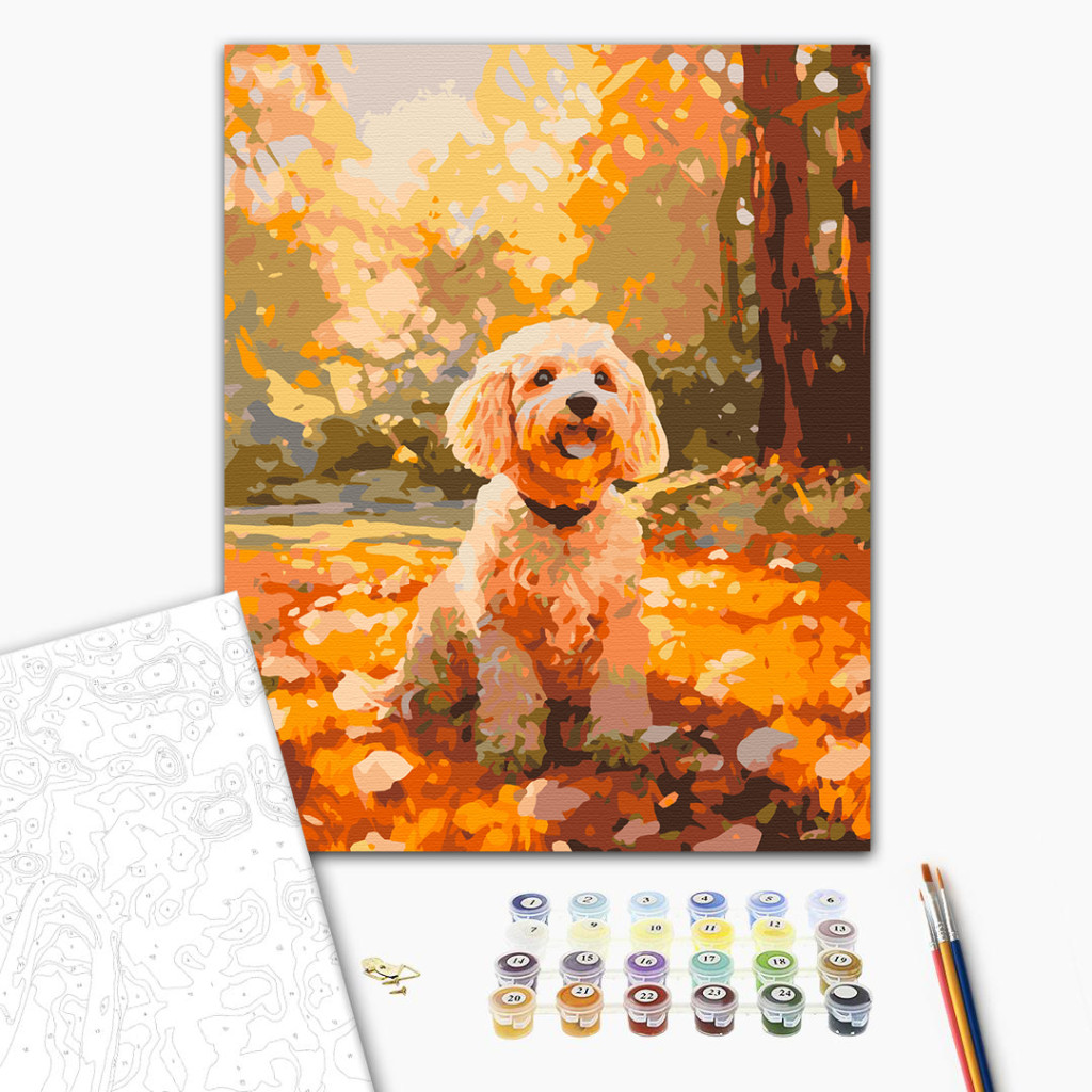 Keretre feszített, számozott kifestőkészlet előrajzolt vászonnal, akrilfestékekkel, ecsettel és segédlettel.