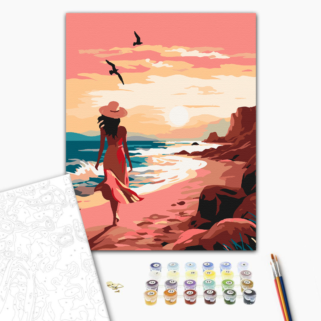 Séta a tengerparton - Számfestő készlet kereten 40x50