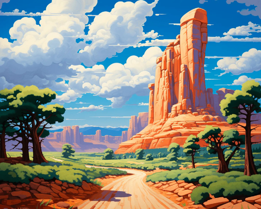 Keretre feszített, számozott kifestőkészlet előrajzolt vászonnal, akrilfestékekkel, ecsettel és segédlettel.