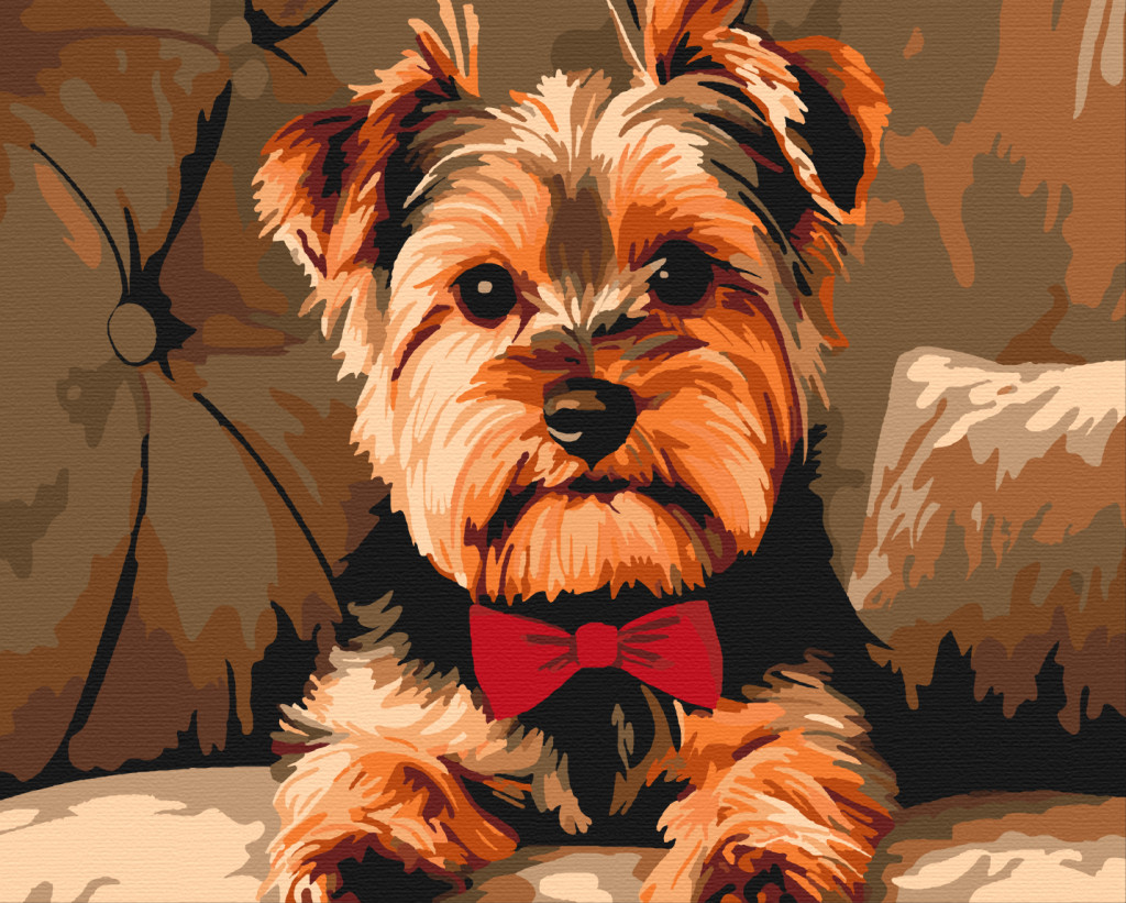 Yorkie csokornyakkendővel - Számfestő készlet kereten 40x50