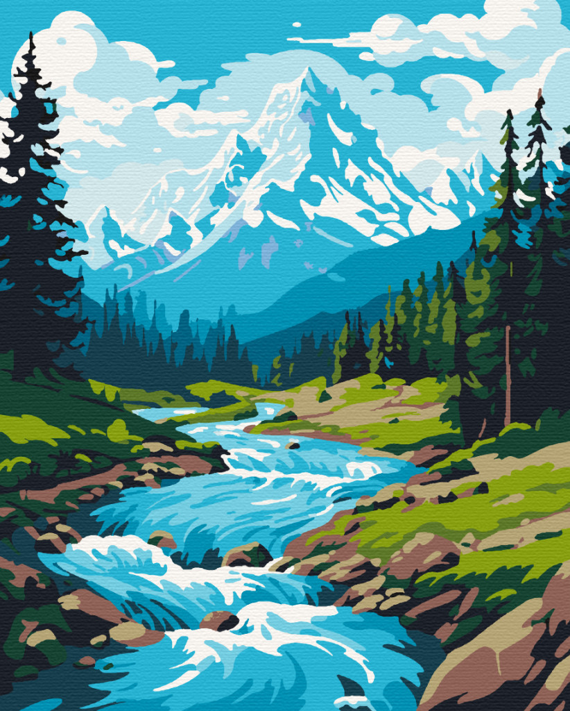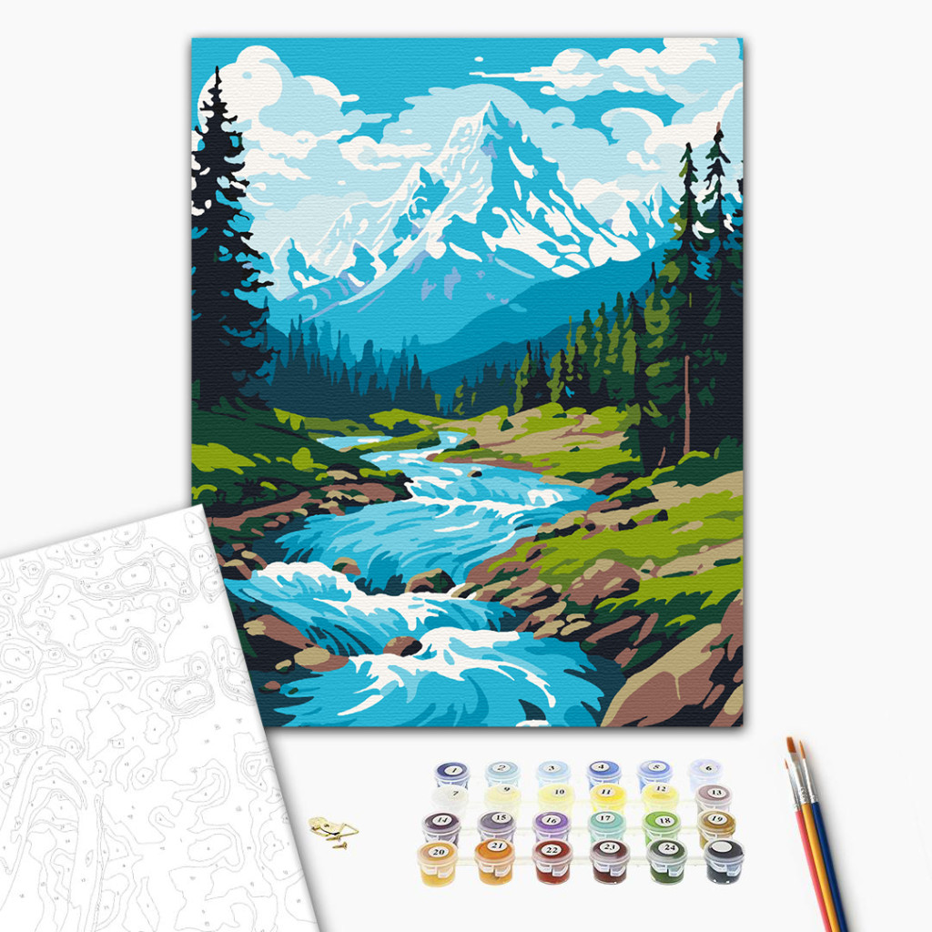 Keretre feszített, számozott kifestőkészlet előrajzolt vászonnal, akrilfestékekkel, ecsettel és segédlettel.