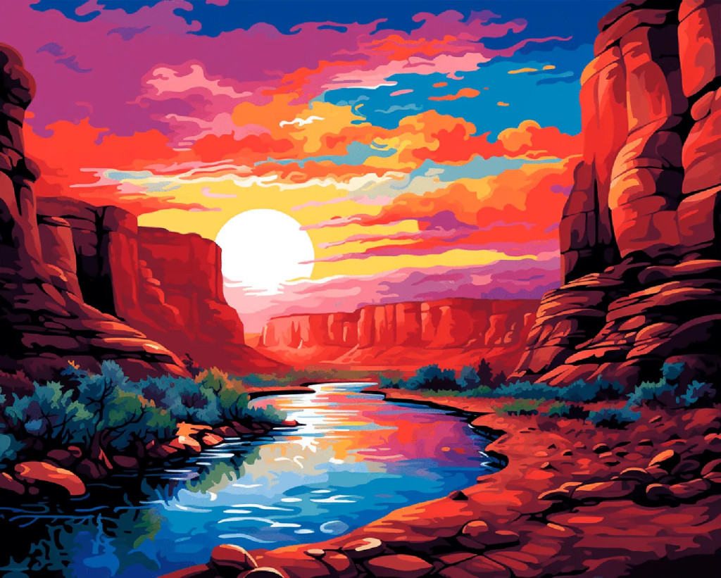 Naplemente a kanyonban - Számfestő készlet kereten 40x50