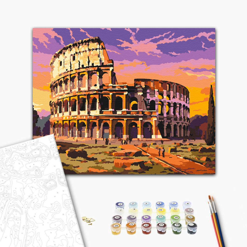 Kolosszeum a naplementében - Számfestő készlet kereten 40x50