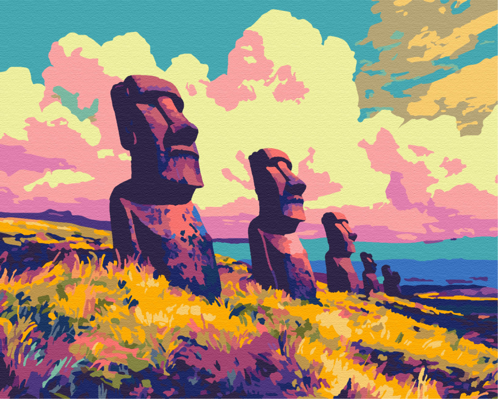 Moai-Statuen - Malen-nach-Zahlen-Set auf Keilrahmen 40x50