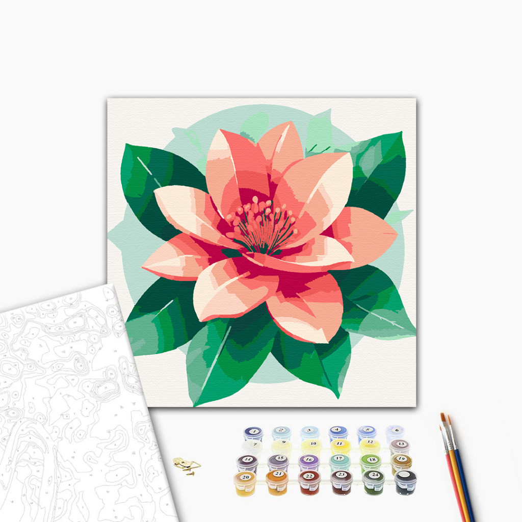 Keretre feszített, számozott kifestőkészlet előrajzolt vászonnal, akrilfestékekkel, ecsettel és segédlettel.