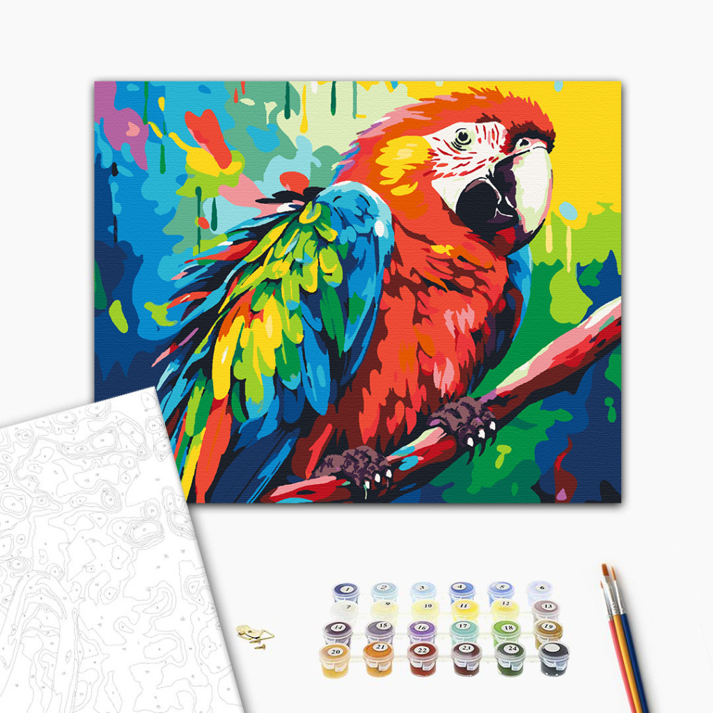 Keretre feszített, számozott kifestőkészlet előrajzolt vászonnal, akrilfestékekkel, ecsettel és segédlettel.
