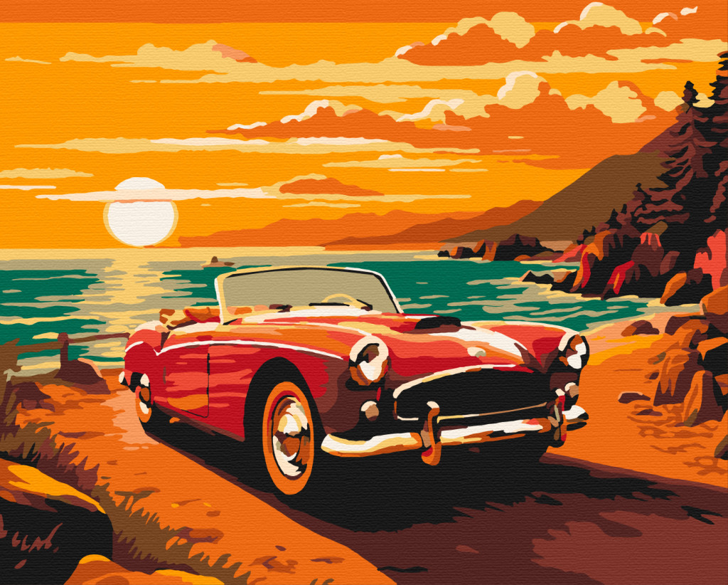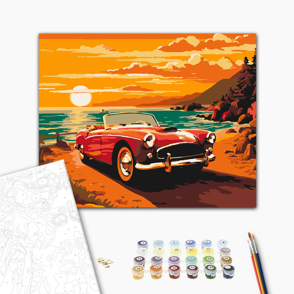 Keretre feszített, számozott kifestőkészlet előrajzolt vászonnal, akrilfestékekkel, ecsettel és segédlettel.