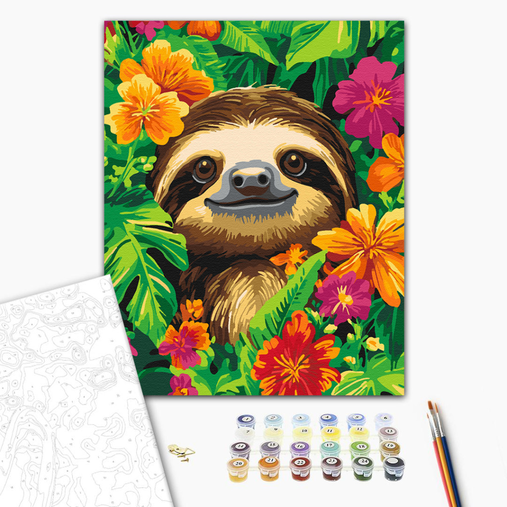 Fröhlicher Faultier im Dschungel - Malen-nach-Zahlen-Set auf Keilrahmen 40x50
