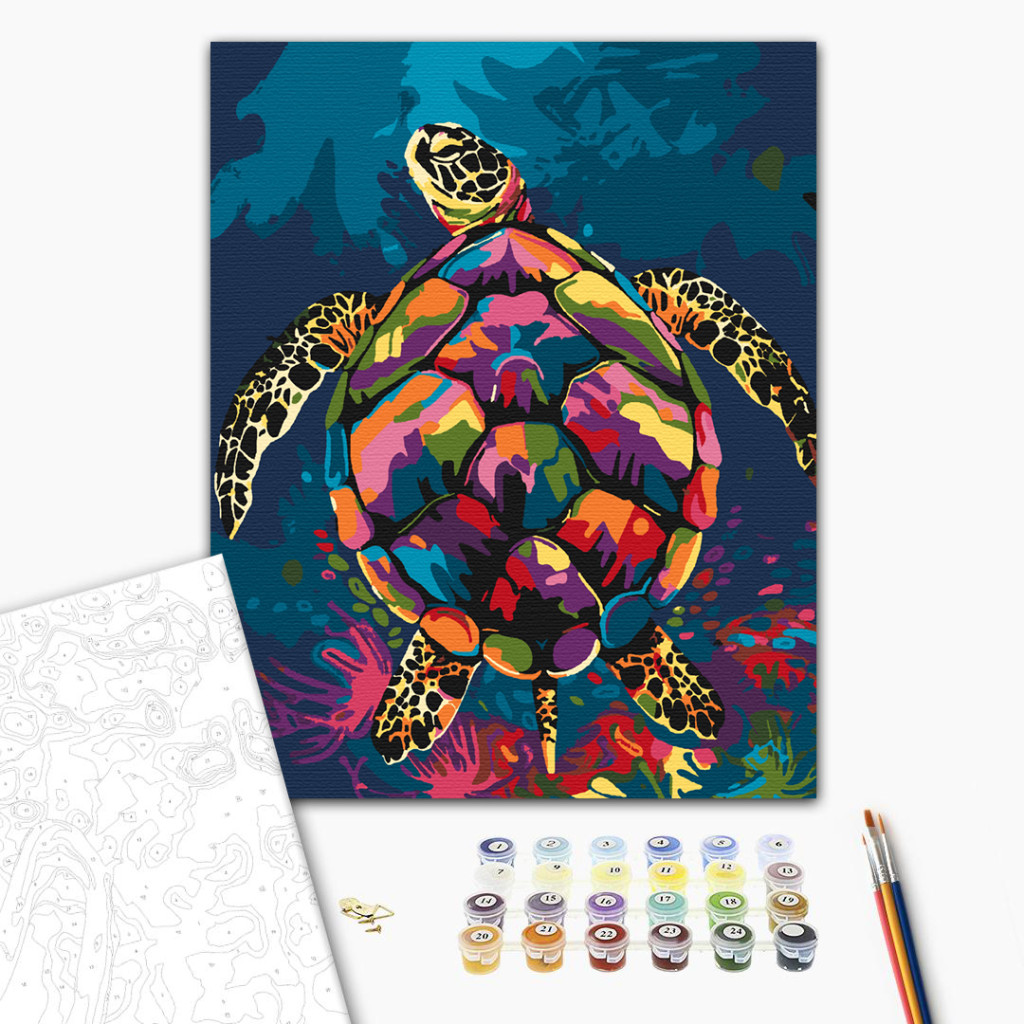 Színes teknős - Számfestő készlet kereten 40x50