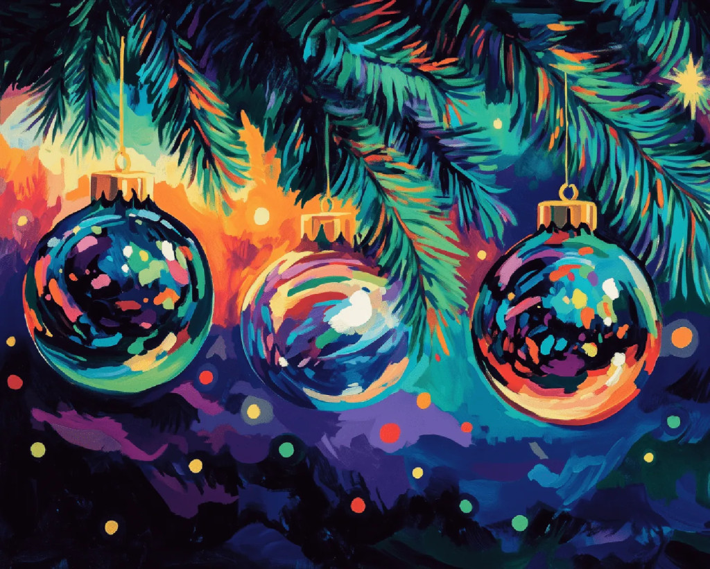 Karácsonyfadíszek - Számfestő készlet kereten 40x50
