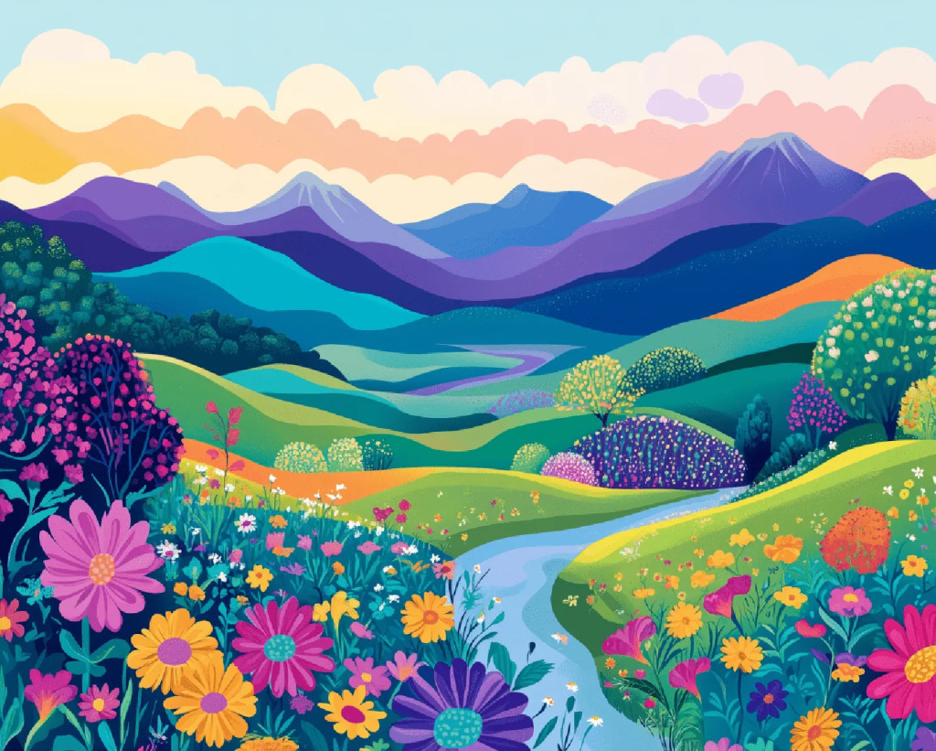 Élénk hegyek - Számfestő készlet kereten 40x50