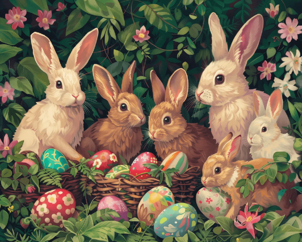 Nyuszi család - Számfestő készlet kereten 40x50