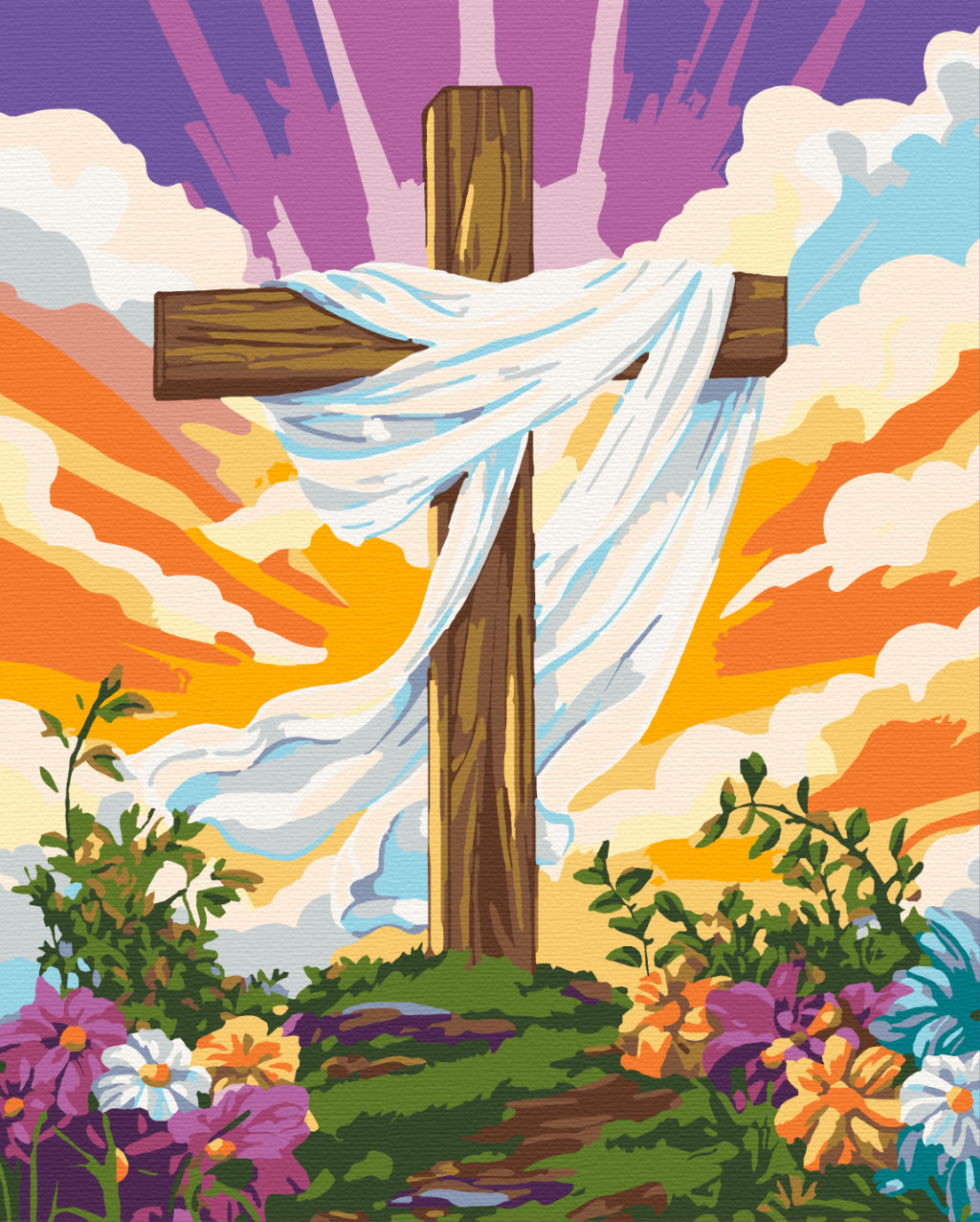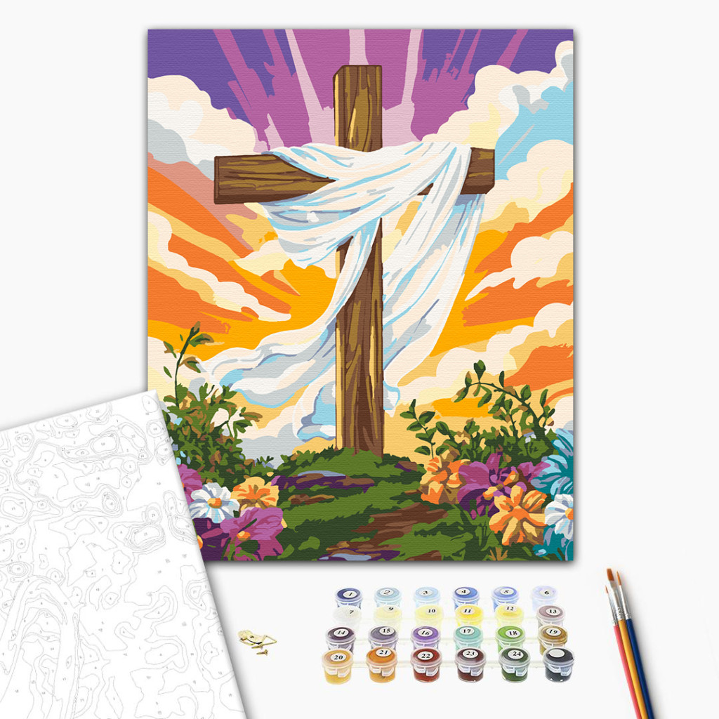 Keretre feszített, számozott kifestőkészlet előrajzolt vászonnal, akrilfestékekkel, ecsettel és segédlettel.