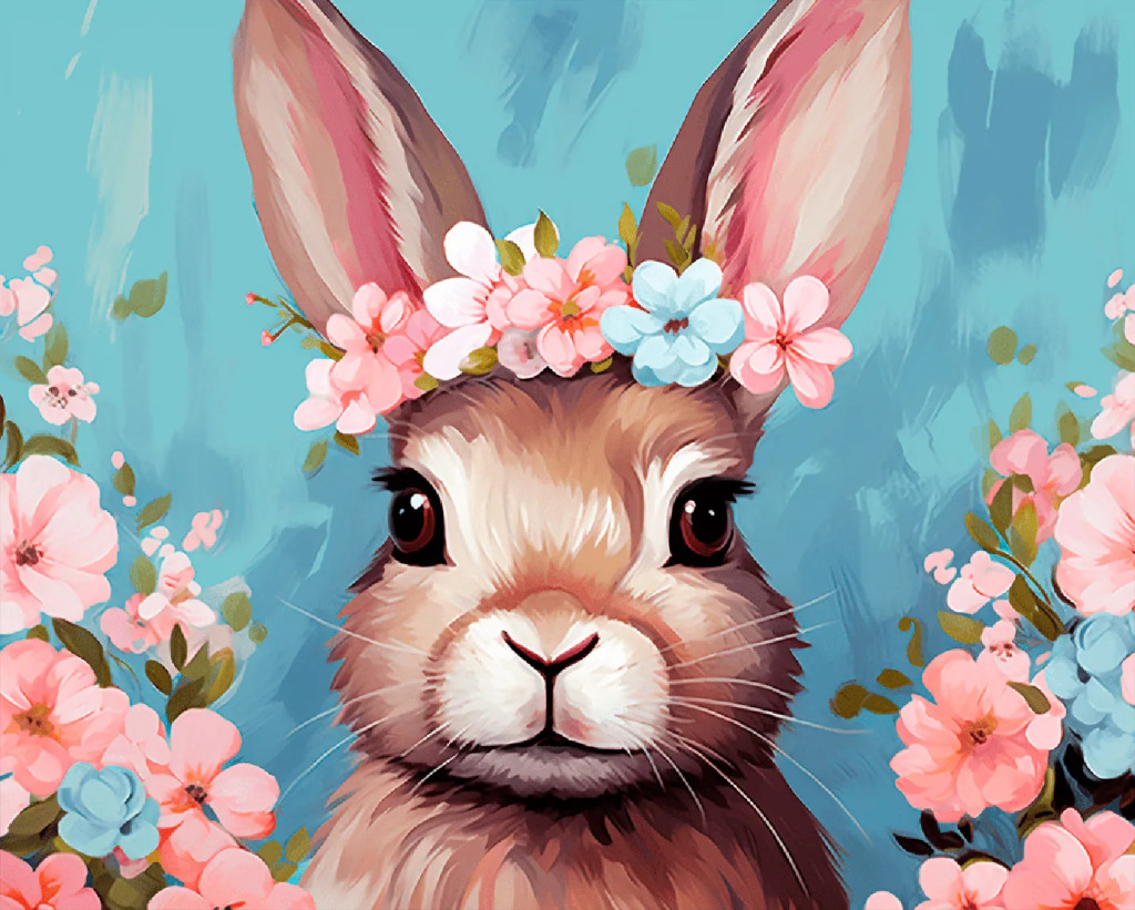 Virágos nyuszikorona - Számfestő készlet kereten 40x50