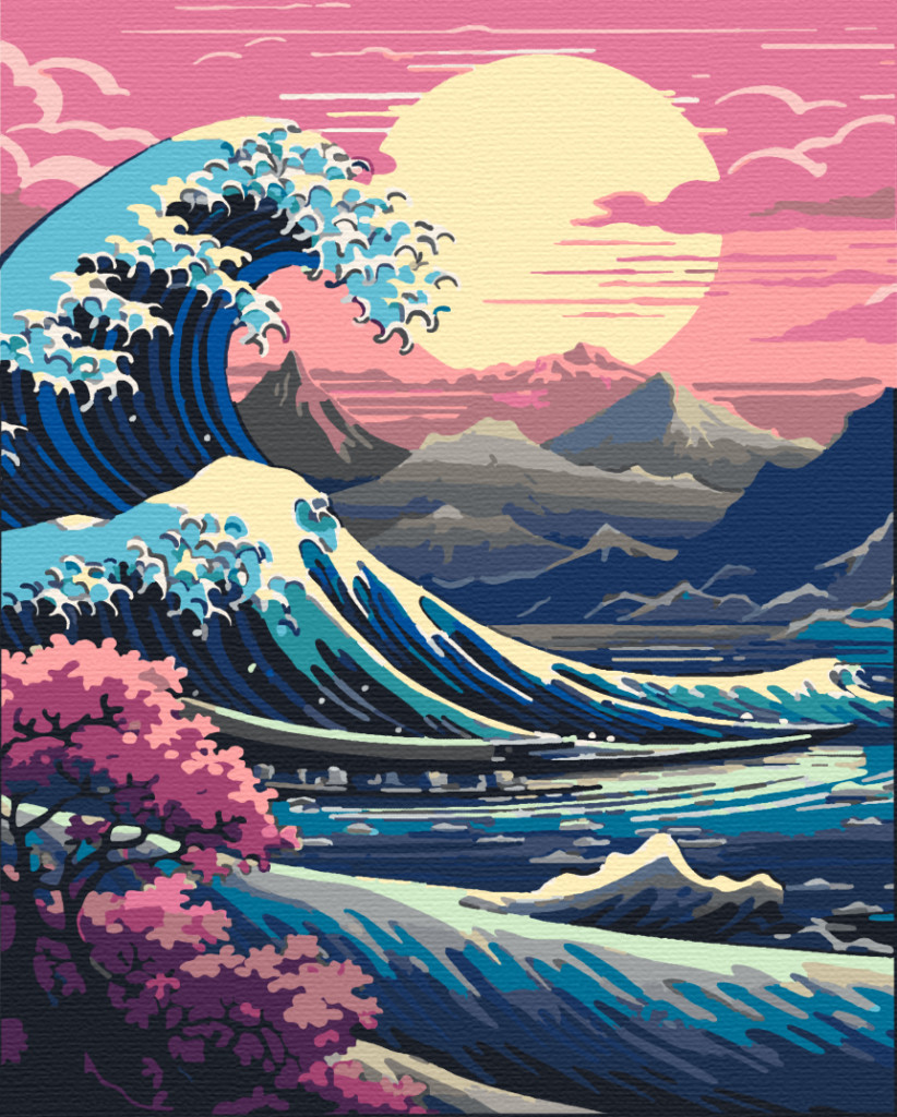 Die große Welle bei Sonnenuntergang - Malen-nach-Zahlen-Set auf Keilrahmen 40x50