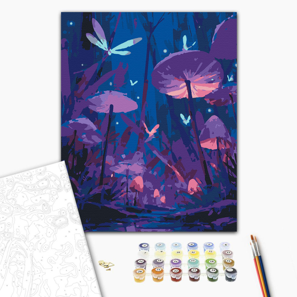 Keretre feszített, számozott kifestőkészlet előrajzolt vászonnal, akrilfestékekkel, ecsettel és segédlettel.