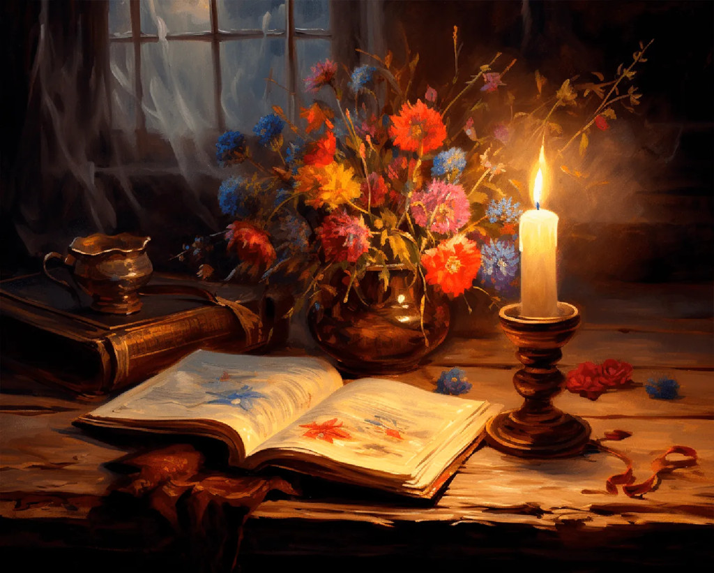 Keretre feszített, számozott kifestőkészlet előrajzolt vászonnal, akrilfestékekkel, ecsettel és segédlettel.