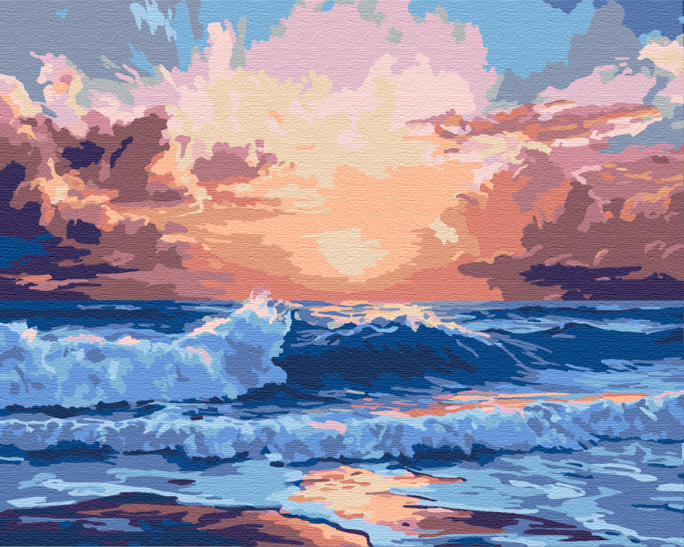 Wellen bei Sonnenuntergang - Malen-nach-Zahlen-Set auf Keilrahmen 40x50