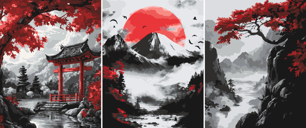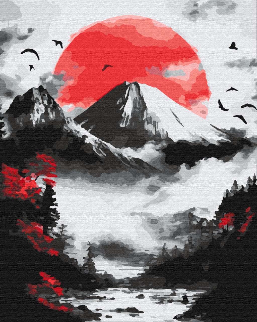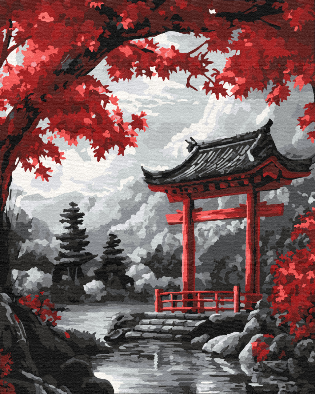 Keretre feszített, számozott kifestőkészlet előrajzolt vászonnal, akrilfestékekkel, ecsettel és segédlettel.