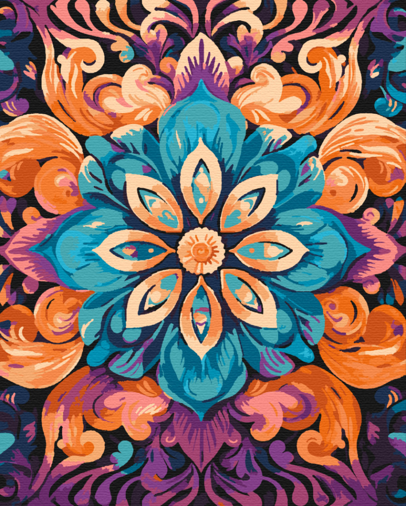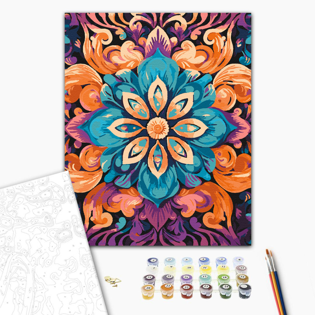 Keretre feszített, számozott kifestőkészlet előrajzolt vászonnal, akrilfestékekkel, ecsettel és segédlettel.