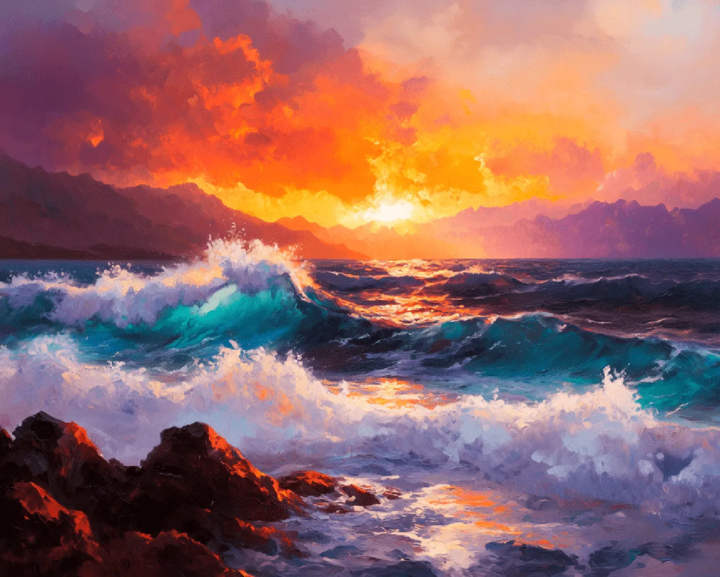 Hullámzó tenger - Számfestő készlet kereten 40x50